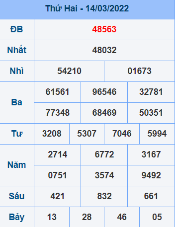 Tương tự ghép giải nhì của ngày 13/03/2022 để chơi cho ngày 14/03/2022 chúng ta sẽ có tiếp cầu lô như sau: