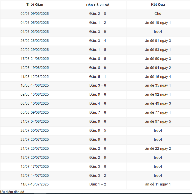 Đầu tiên, anh em nên tập trung vào bảng thống kê 2 chữ số cuối của giải nhì. Dựa trên dữ liệu này, bạn có thể xây dựng ra 1 dàn đề 50 số đánh đều mỗi ngày. Nếu kiên trì áp dụng chiến thuật này trong khoảng thời gian, khả năng trúng đề sẽ cải thiện rõ rệt.