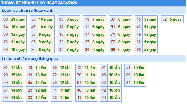 Soi cầu XSMB ngày 24/04/2026 bằng cách thống kê lô gan