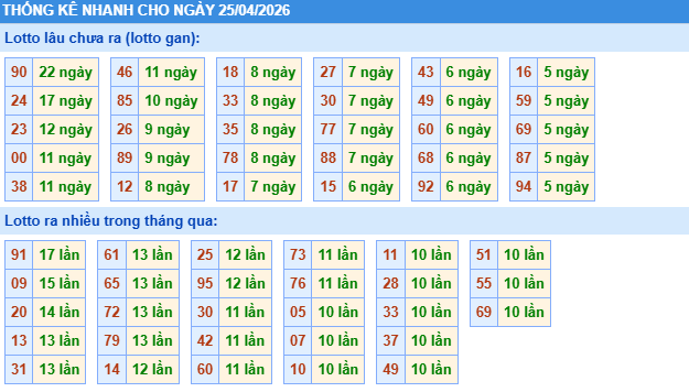 Soi cầu XSMB ngày 25/04/2026 bằng cách thống kê lô gan