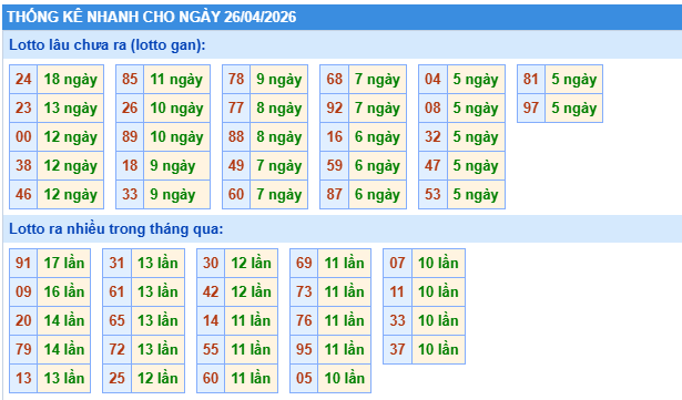 Soi cầu XSMB ngày 26/04/2026 bằng cách thống kê lô gan